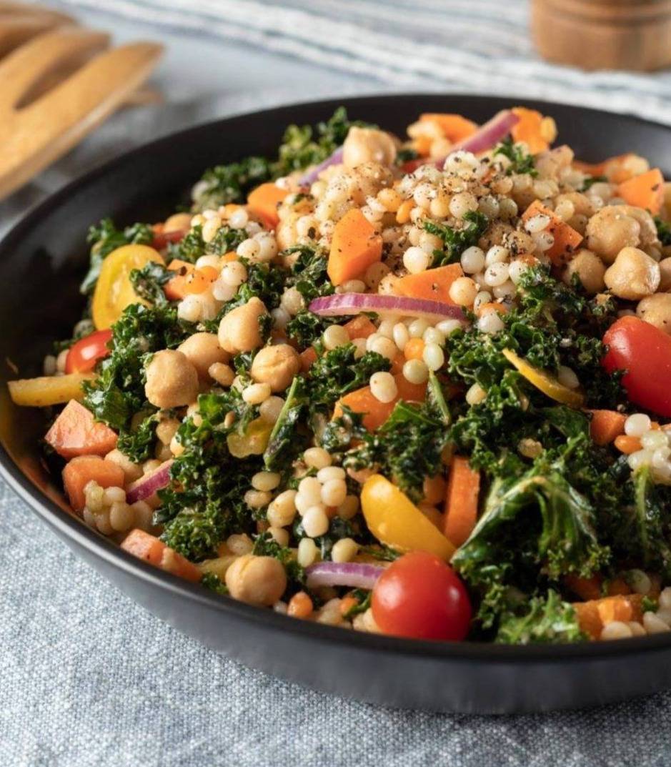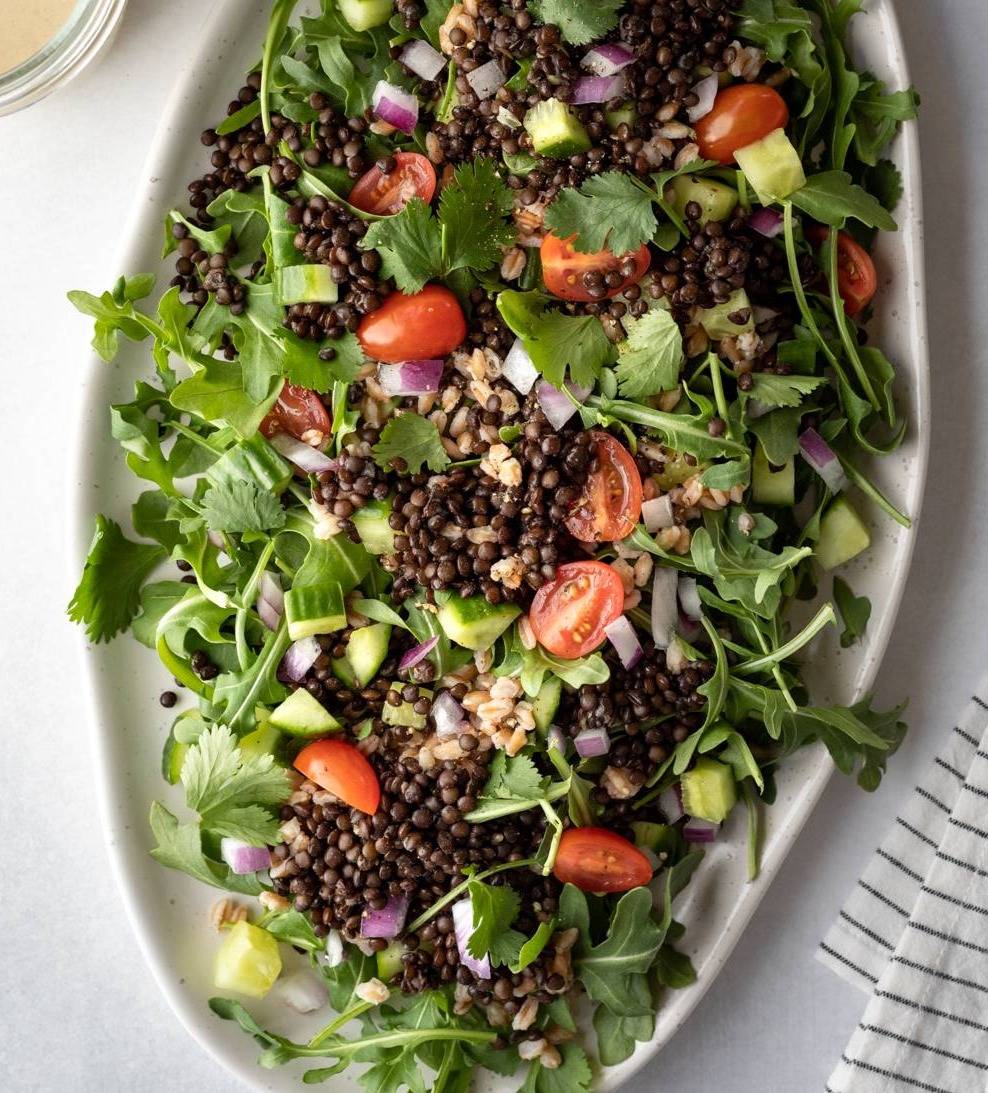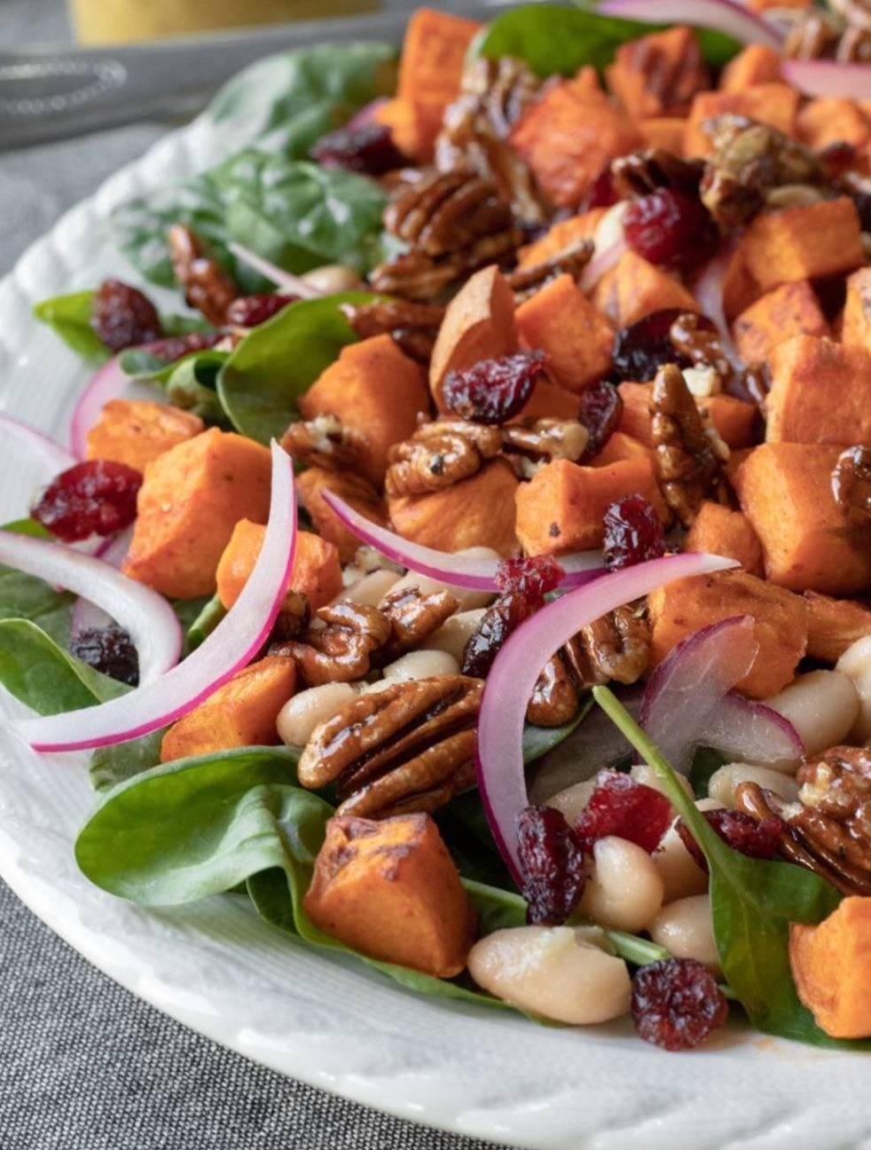The dressing is a simple orange vinaigrette that pairs really well with cranberries and the mild, nutty flavor of bulgur. I intended to experiment with an oil-free version this week, but time got away from me! If you want to replace the olive oil, I have a feeling 2-3 Tbsp of tahini plus a little extra orange juice will taste amazing. More Hearty Salads