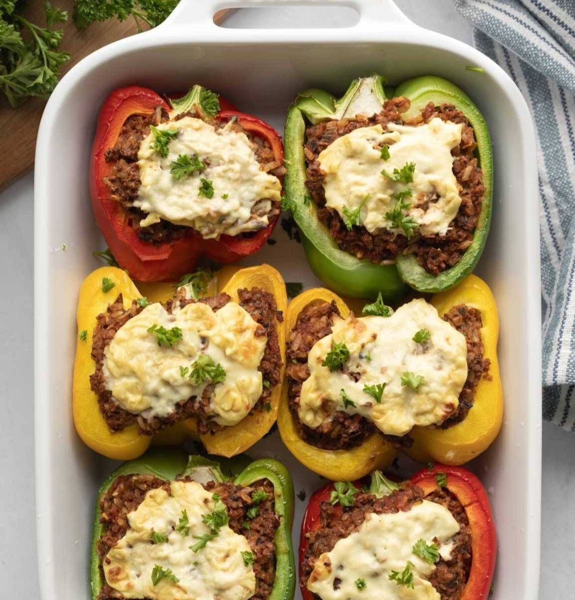 They're filled with a blend of chewy black rice, creamy black beans, fire-roasted tomatoes, and Tex-Mex spices. Something about the combo is so satisfying! You can easily switch things up, too. Try different grains, beans, lentils, tempeh, etc, and different flavor profiles! They'd be great with the more classic Italian flavors usually found in stuffed peppers. More Recipes With Beans and/or Rice Brown Rice PilafVegan Stuffed Peppers