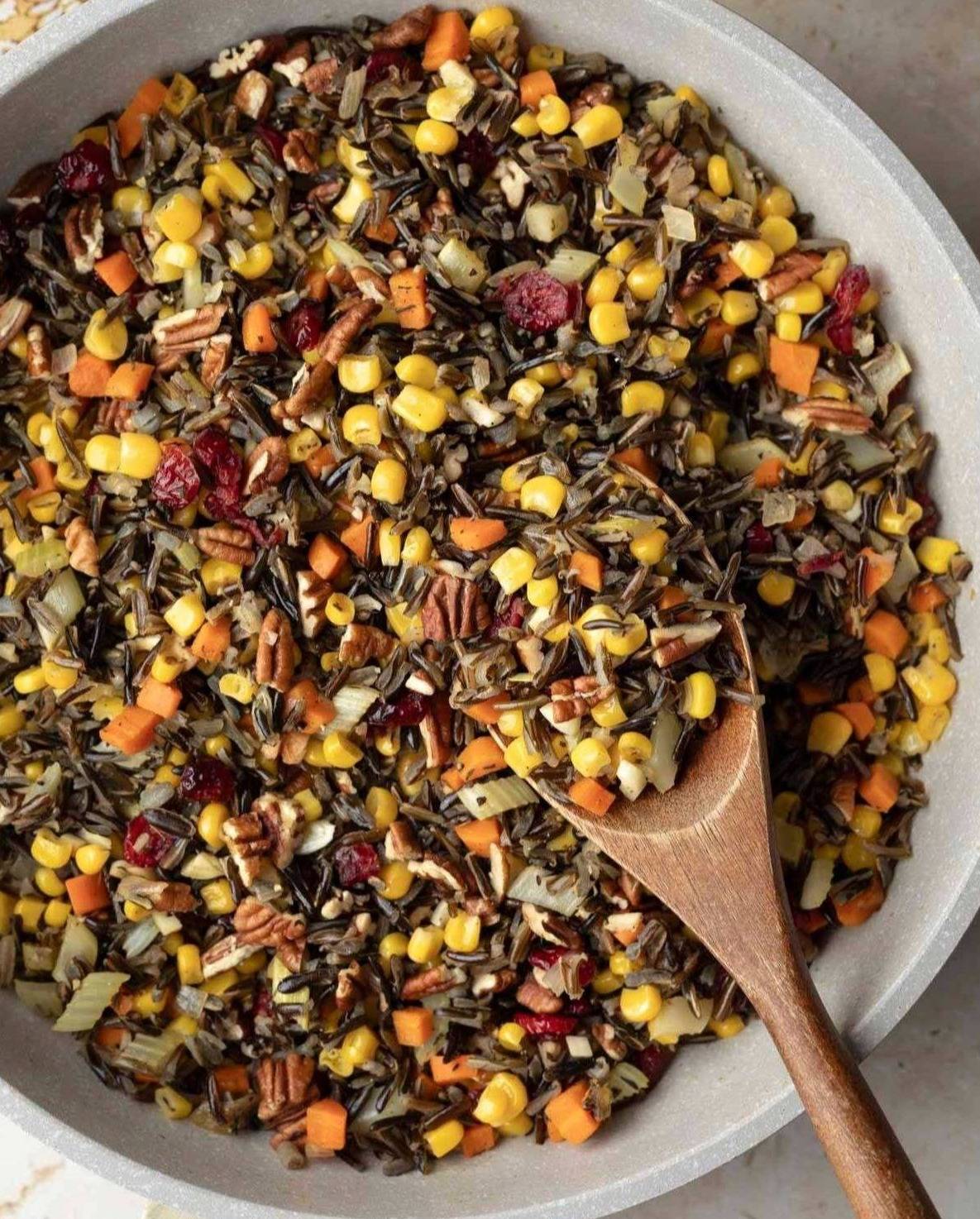 Hi Reader, I'll admit, I'm jumping the gun a little with this recipe. 🍂 But it's easy to make, and leftovers keep for days...so why wait for Thanksgiving? Fall is my favorite time of year for food and I have a tendency to lean into it! 😁 I'm sure I'm not alone here. I didn't grow up with wild rice, but my husband did and really loves it. So I thought I'd put my spin on an autumn wild rice pilaf. The wild rice is cooked in broth (because it tastes so much better than cooked in water), then tossed with sautéed shallots, carrots, celery, and dried herbs. Add a squeeze of lemon and some toasted pecans and dried cranberries, and you've got a vegan gluten-free side dish that's delicious ANYtime!
